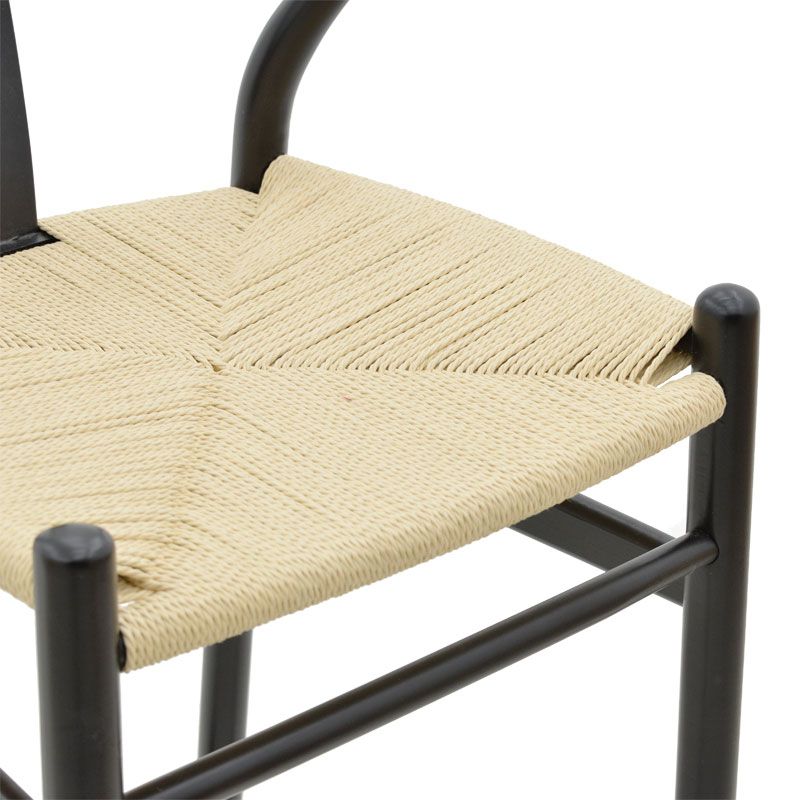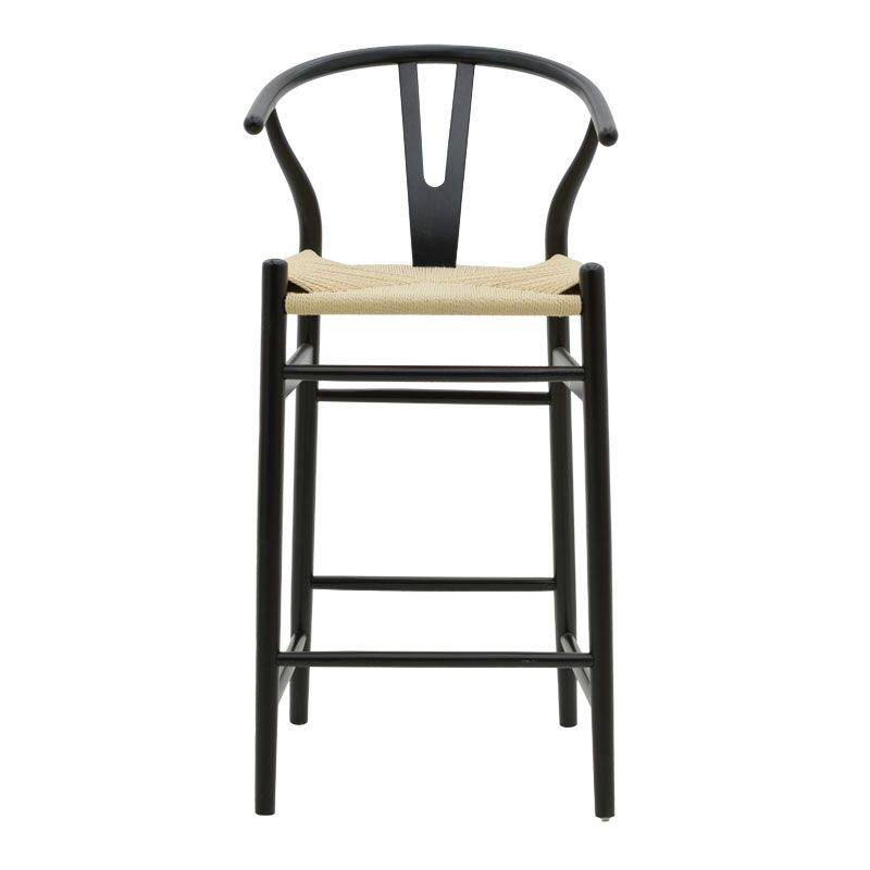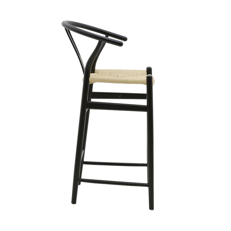 Σκαμπό μπαρ Wishbone pakoworld ξύλο οξιάς μαύρο-έδρα φυσικό σχοινί 53x54x107εκ