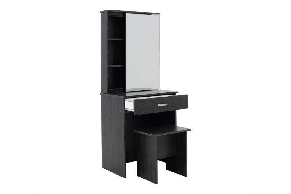 Τουαλέτα κρεβατοκάμαρας Zelia  pakoworld με καθρέπτη και σκαμπό χρώμα wenge eo 60x40.5x151εκ