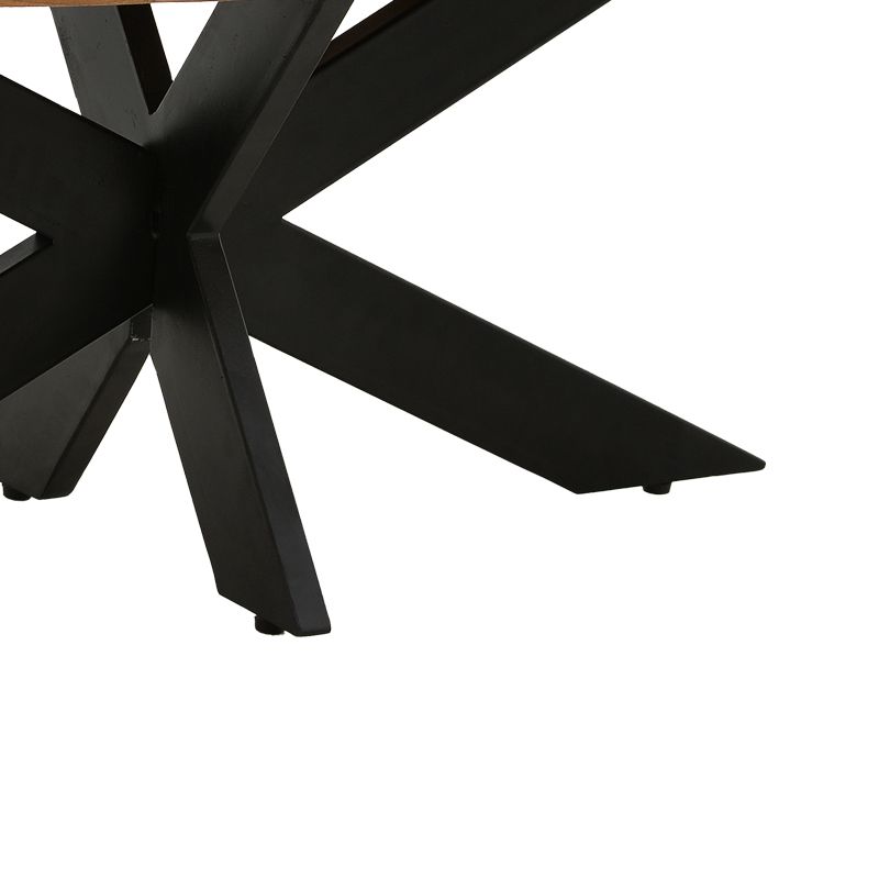 - Μοναδικός Σχεδιασμός: Η οβάλ επιφάνεια από μασίφ ξύλο, με το εντυπωσιακό ακτινωτό μοτίβο, προσδίδει μια αίσθηση ζεστασιάς και εκλεπτυσμένης ρουστίκ κομψότητας. Κάθε τραπέζι είναι μοναδικό, με τους φυσικούς κόκκους του ξύλου να αφηγούνται τη δική τους ιστορία.
