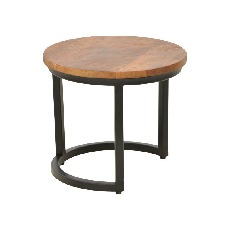 Τραπέζι σαλονιού Frina pakoworld σετ 3τεμ mango ξύλο σε καρυδί απόχρωση με πόδι μαύρο μέταλλο