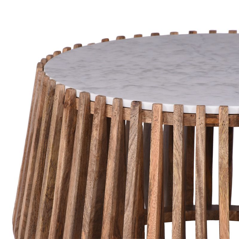 Τραπέζι σαλονιού Mable pakoworld mango ξύλο σε φυσική απόχρωση με επιφάνεια μαρμάρου Φ80x45εκ