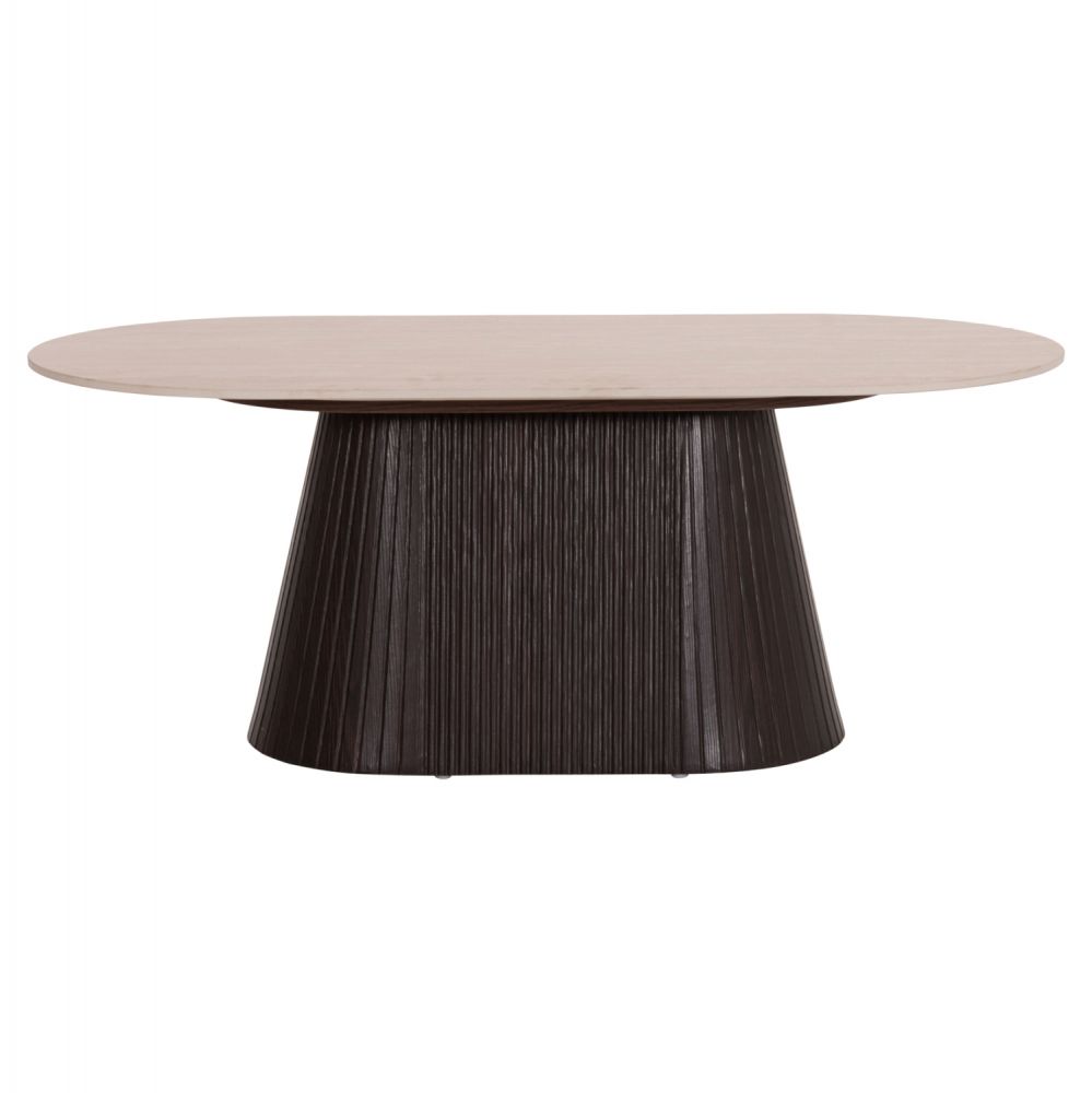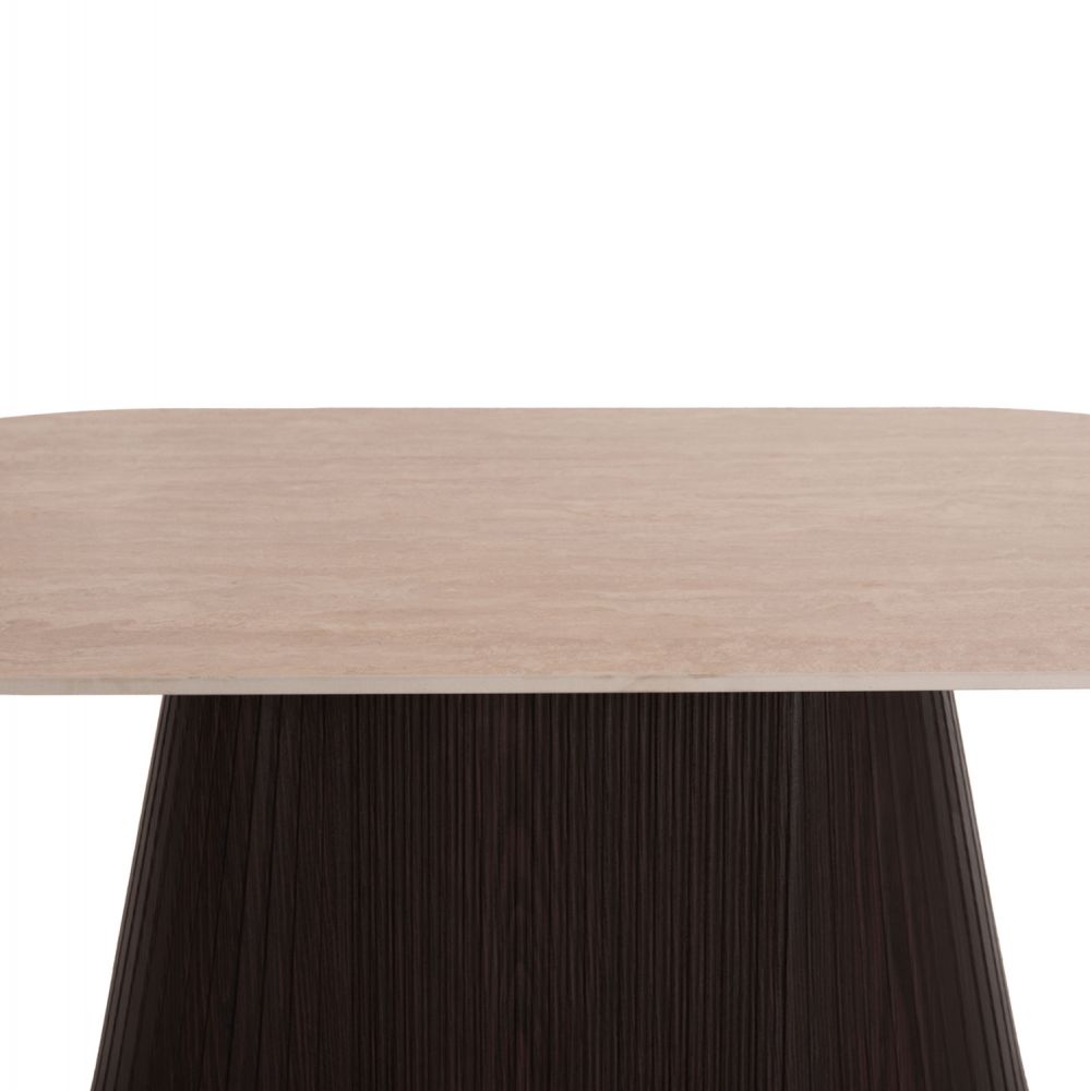 Το τραπέζι σαλονιού CATER είναι οβάλ και αποτελεί νέα προσθήκη στην γκάμα μας. Η επίπεδη επιφάνειά του είναι κεραμική σε χρωματισμό TRAVERTINE STONE, ενώ η βάση του είναι κατασκευασμένη εξολοκλήρου από MDF σε χρώμα ΣΚΟΥΡΟ ΚΑΦΕ, με όμορφες πτυχώσεις.