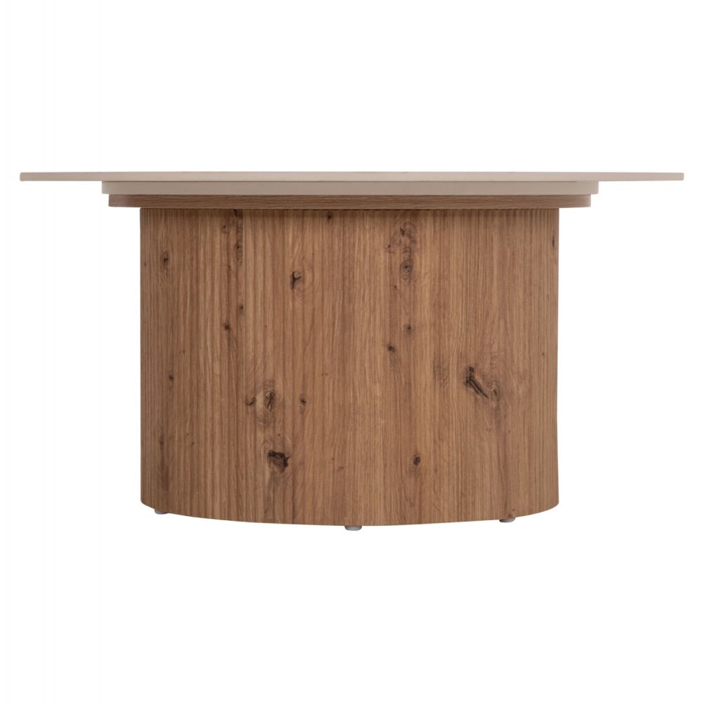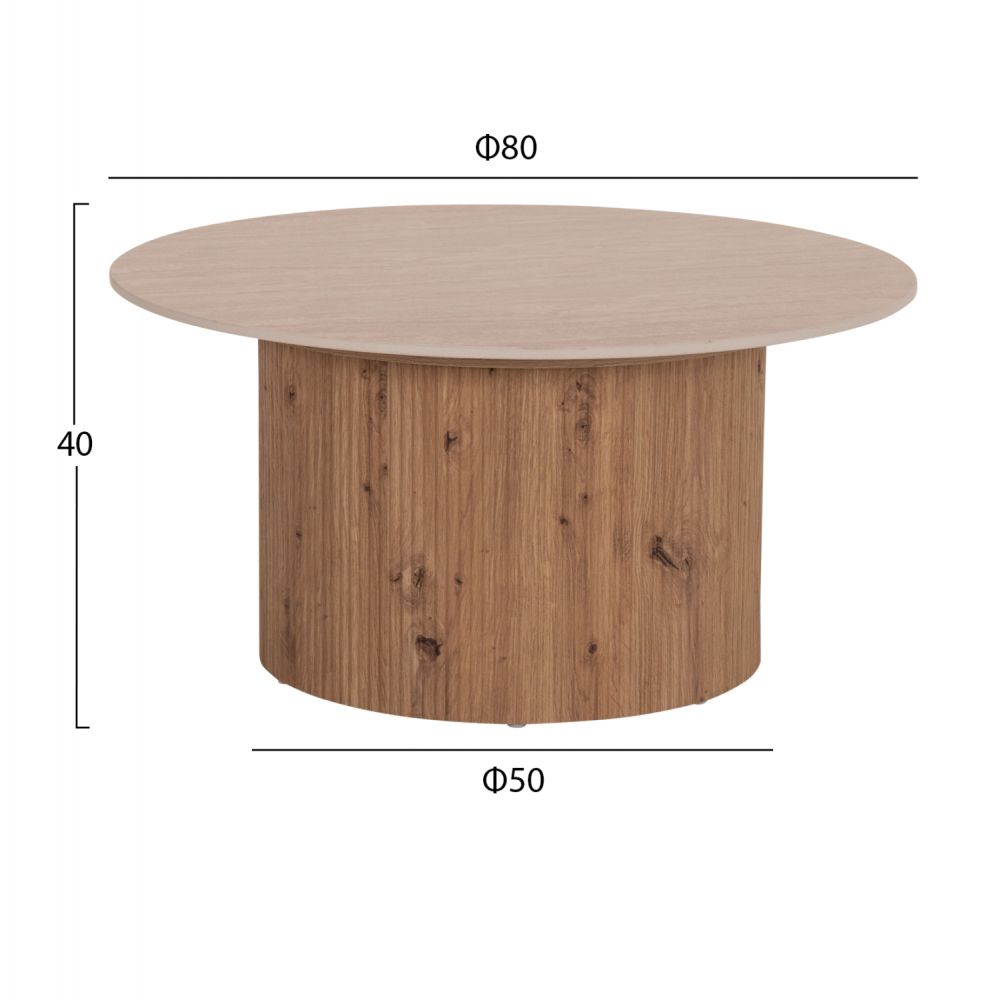 Το τραπέζι σαλονιού TWIL είναι στρογγυλό και αποτελεί νέα προσθήκη στην γκάμα μας. Η επίπεδη επιφάνειά του είναι κεραμική σε χρωματισμό TRAVERTINE STONE, ενώ η βάση του είναι κυλινδρική κατασκευασμένη εξολοκλήρου από MDF σε χρώμα ΦΥΣΙΚΟΥ ΞΥΛΟΥ, με όμορφες πτυχώσεις.