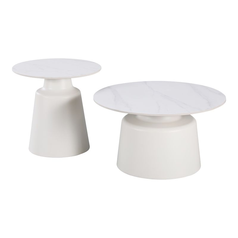 Τραπέζια σαλονιού Dualis pakoworld σετ 2 τεμ μέταλλο-sintered stone σε λευκό μαμρμάρου