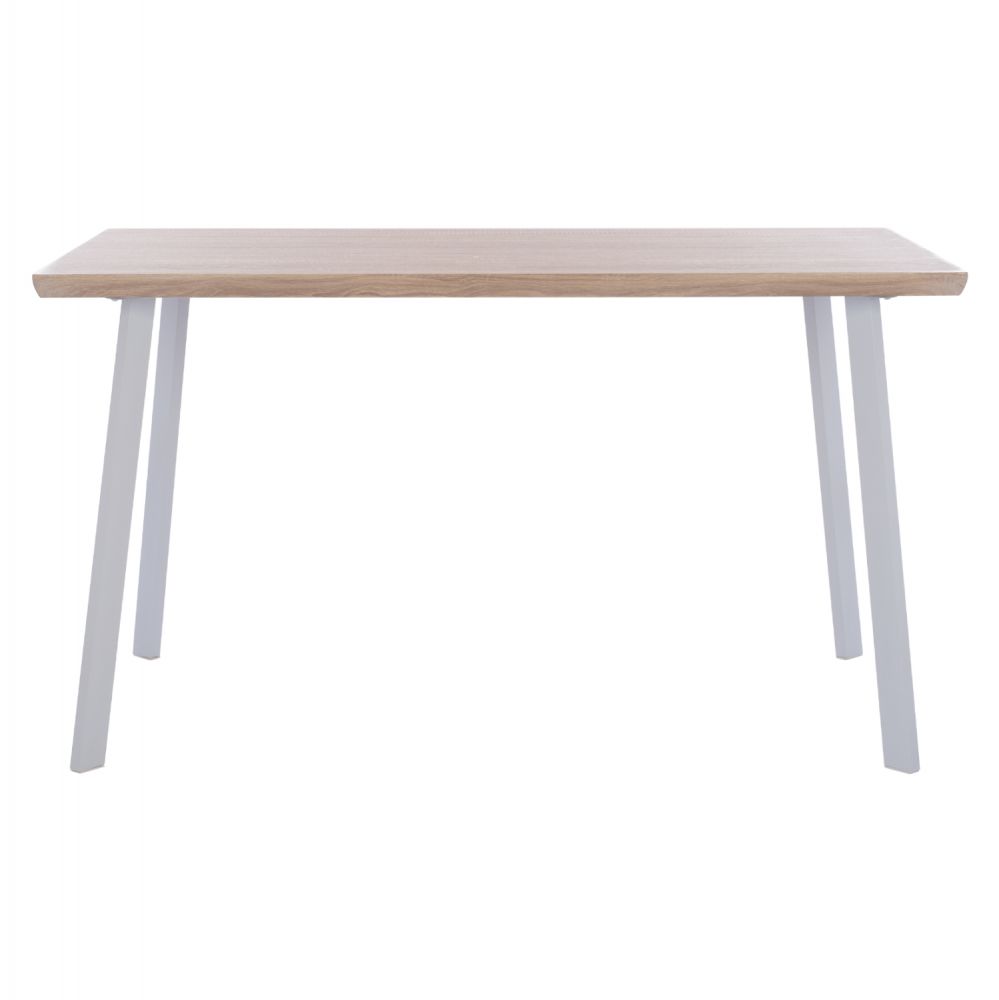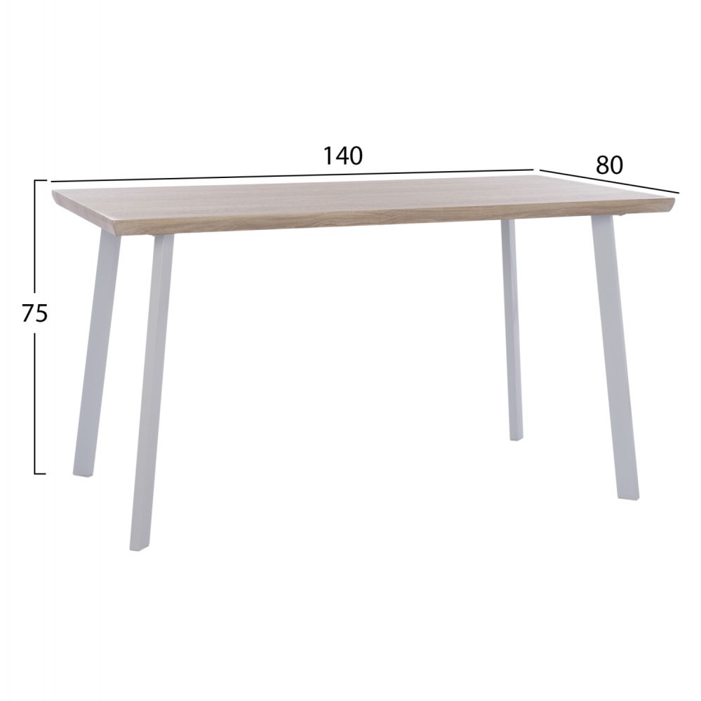 Ένα ορθογώνιο τραπέζι με μεταλλικά πόδια σε ΛΕΥΚΟ χρώμα και επιφάνεια από MDF σε SONAMA χρώμα, και 4 καρέκλες με κάθισμα και πλάτη από πολυπροπυλένιο και μεταλλικά πόδια, σε ΛΕΥΚΟ χρώμα.