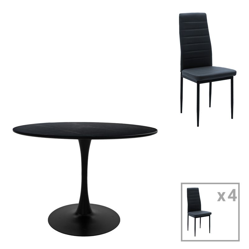 Τραπεζαρία Balou-Parker pakoworld σετ 5τεμ μαύρο-ανθρακί Φ100x73εκ