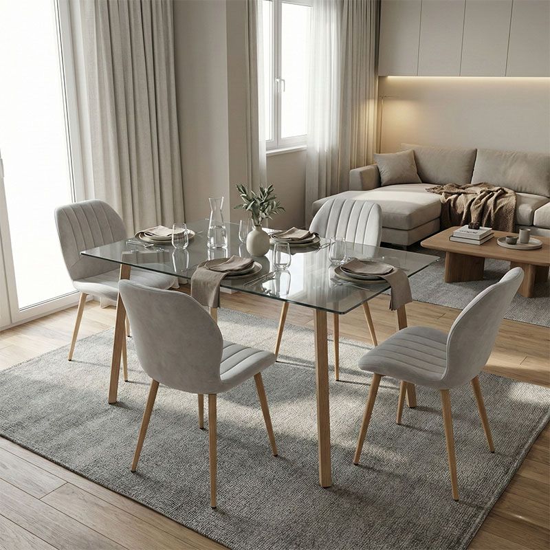 Τραπεζαρία με Καρέκλες Jelour Γκρι και Τραπέζι Titta Γυαλί 120x70x75εκ Σετ 5τεμ