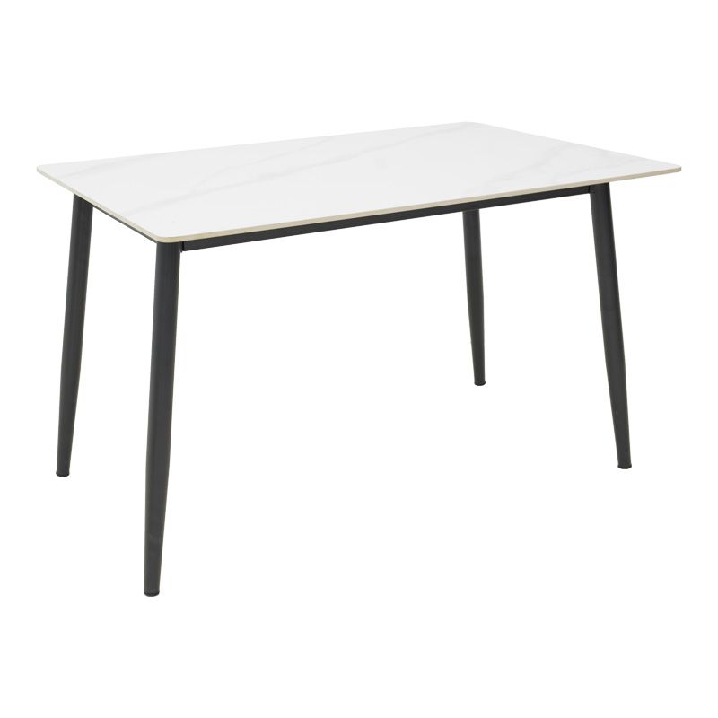 Τραπέζι Gustas Ι pakoworld λευκό μαρμάρου sintered stone-μαύρο μέταλλο 120x80x76εκ