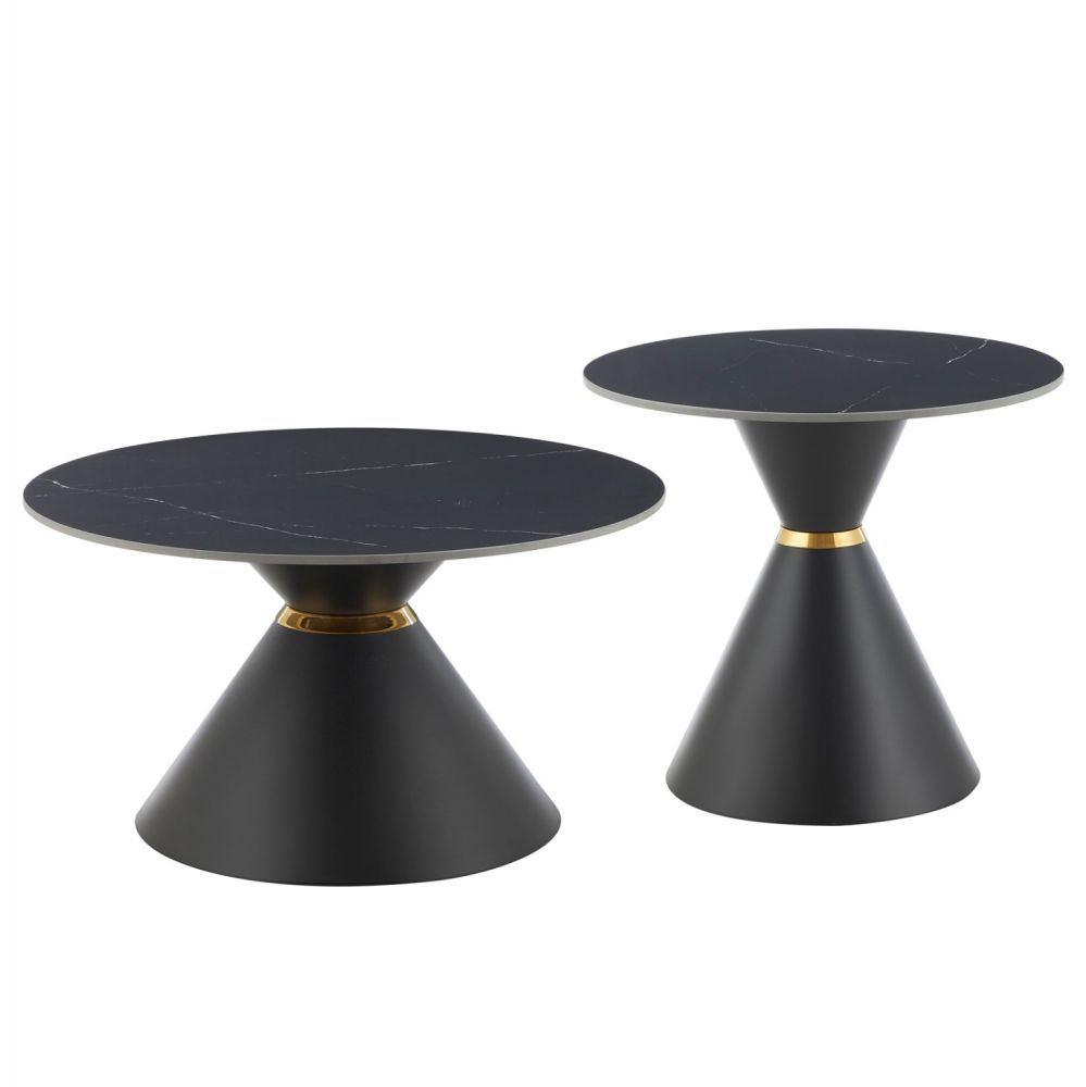 ΤΡΑΠΕΖΙΑ ΣΑΛΟΝΙΟΥ NANDO HM18267.02 ΚΕΡΑΜΙΚΑ TOP ΟΨΗ ΜΑΥΡΟ ΜΑΡΜΑΡΟ Φ60εκ & Φ80εκ