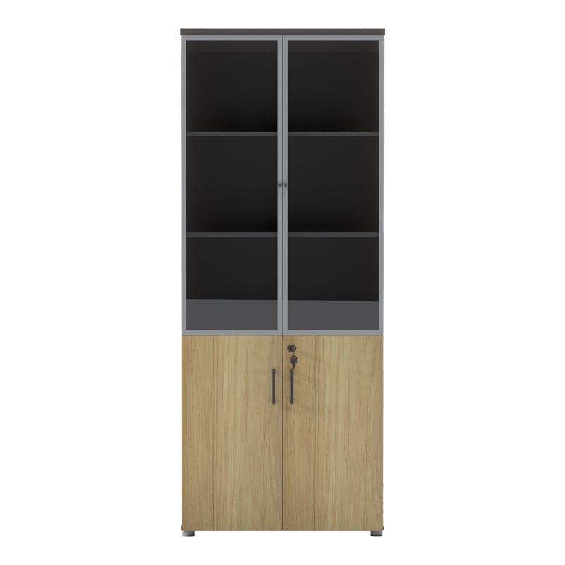 Ντουλάπα γραφείου επαγγελματική με γυάλινες πόρτες Lotus pakoworld σε φυσική-ανθρακί απόχρωση 80x40x200εκ