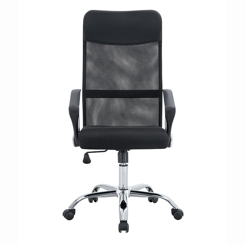 Α9943 πολυθρόνα γραφείου με μοντέρνο σχεδιασμό, ψηλή πλάτη ενδεδυμένη με μαύρο mesh ύφασμα για να αποτρέπει την εφίδρωση και μπράτσα με κεκλιμένη επιφάνεια που χαρίζουν περισσότερη εργονομία. Ανάκλιση πλάτης για μεγαλύτερη άνεση και μηχανισμό αυξομείωσης του ύψους με αμορτισέρ. Η βάση είναι χρωμίου για μεγαλύτερη αντοχή. Μπορεί να συνδυαστεί σε όλους τους χώρους.