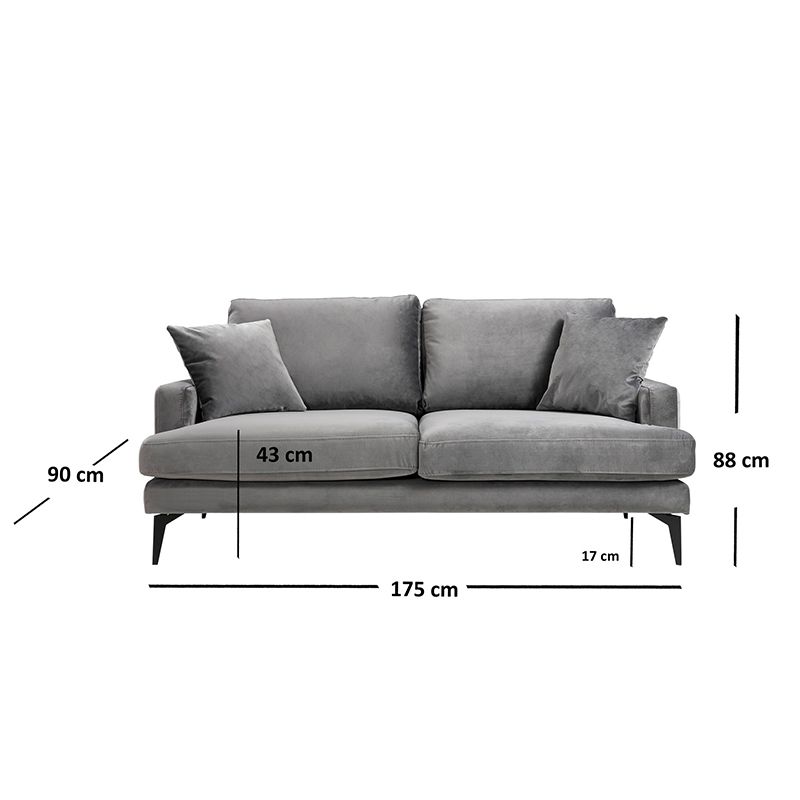Καναπές 2θέσιοςFortune pakoworld βελούδο ανθρακί-μαύρο 175x90x88εκ