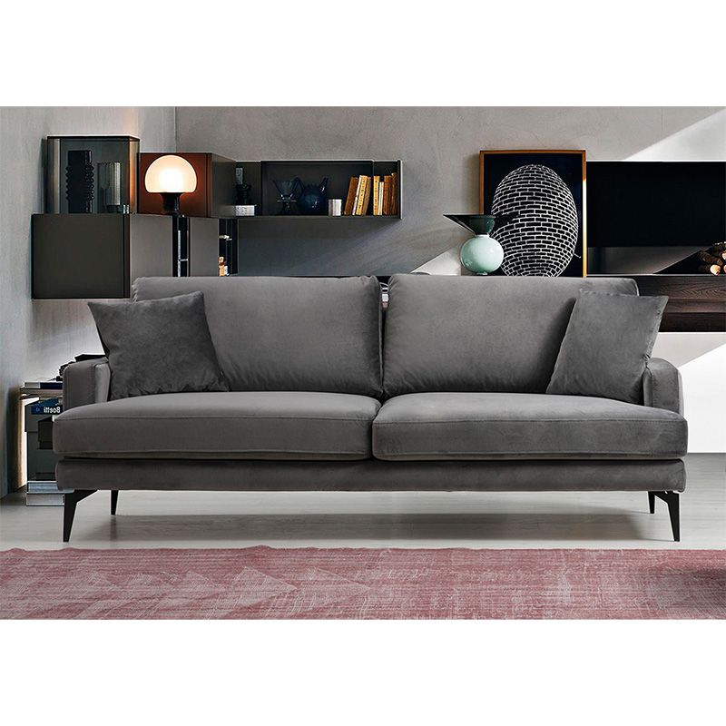 Καναπές 3θέσιος Fortune pakoworld βελούδο ανθρακί-μαύρο 205x90x88εκ