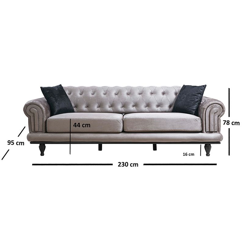 Καναπές 3θέσιος PWF-0522 pakoworld ύφασμα γκρι-μαύρο 230x95x78εκ