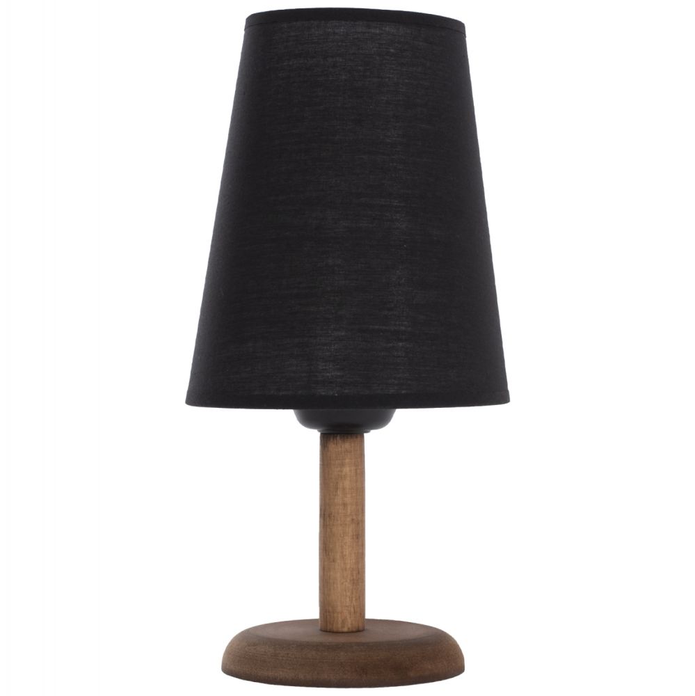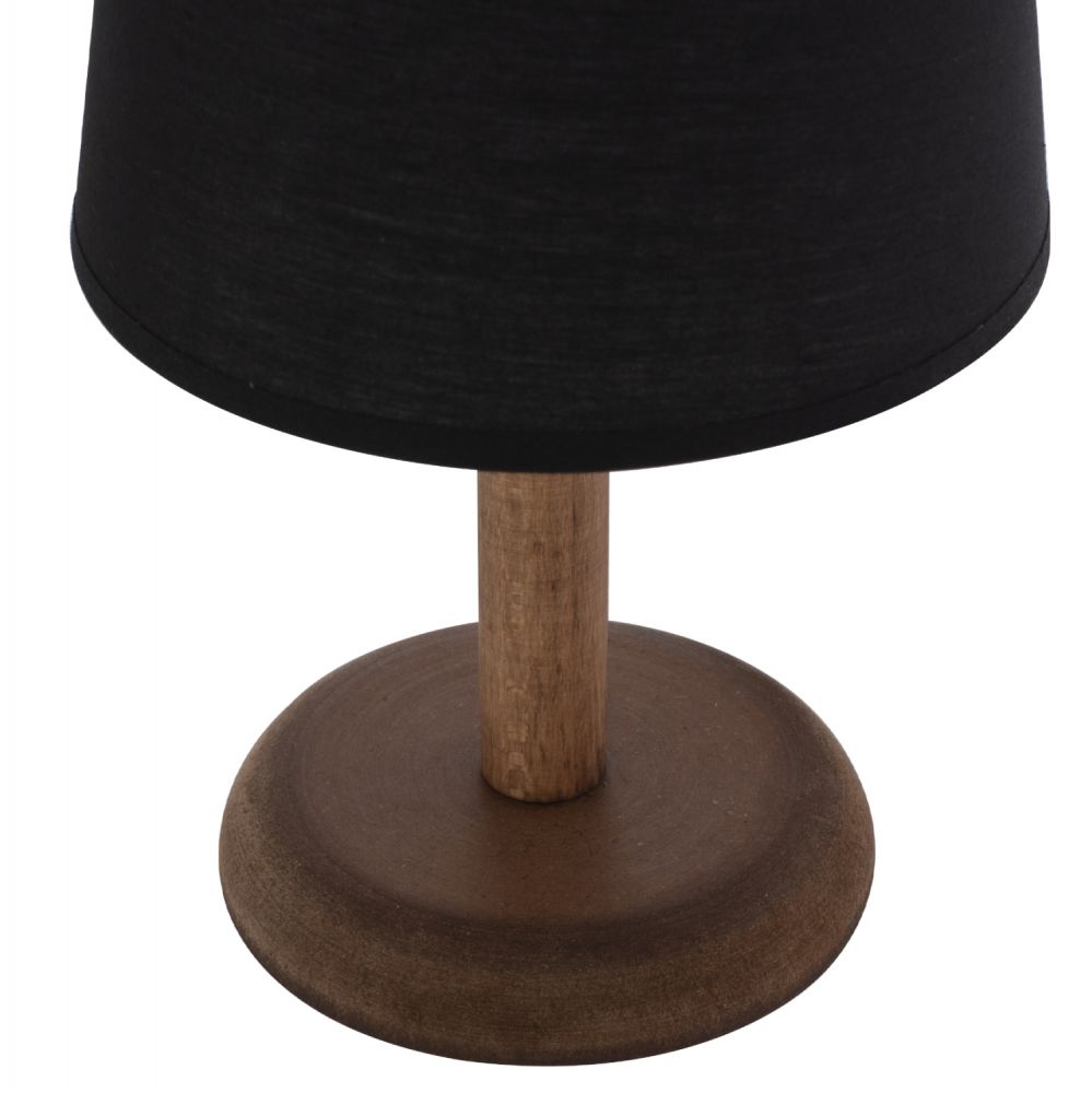 Hm7692.01---Επιτραπέζιο διακοσμητικό φωτιστικό με ξύλινη κυκλική βάση και κολωνίτσα σε καρυδί χρώμα και «καπέλο» κυλινδρικό σε μαύρο χρώμα. Το «καπέλο» είναι φτιαγμένο από ύφασμα και είναι αρκετά μακρόστενο. Αυτού του είδους τα φωτιστικά δεν προορίζονται για φωτιστικά διαβάσματος και αυτό πρέπει πάντα να λαμβάνεται υπόψη κατά την επιλογή τους. Είναι καθαρά διακοσμητικά και το ταίριασμά τους με τον περιβάλλοντα χώρο θα πρέπει να είναι αρμονικό. Αυτό το φωτιστικό είναι λιτό, κομψό και βολικό σε διαστάσεις παρέχοντας αμέτρητες δυνατότητες «δεσίματος» με την υπόλοιπη διακόσμησή σας. Είναι ένα μικρό έργο τέχνης.