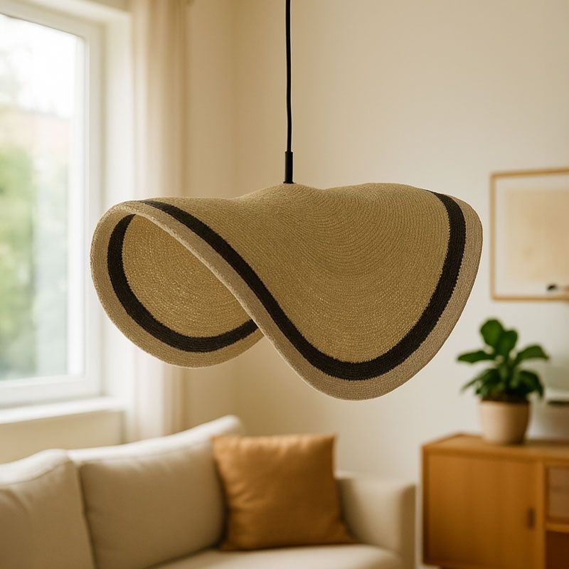 Φωτιστικό οροφής Hatchie Inart φυσικό-μαύρο-λευκό ψάθα-μέταλλο Φ100x133εκ