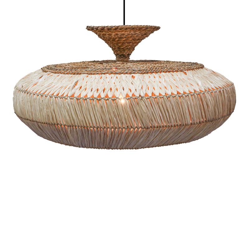 - Sisal: Το sisal, που προέρχεται από τα φύλλα του φυτού Agave sisalanaκαι αποτελεί μια φυσική ίνα που βρίσκει εφαρμογή σε διάφορες κατασκευές, συμπεριλαμβανομένων και των φωτιστικών. Φημίζεται για την ανθεκτικότητα και την αντοχή του στη φθορά, καθιστώντας το ιδανικό για μακροχρόνια χρήση. Χάρη στην ιδιότητά του να διαχέει το φως, δημιουργεί μια απαλή λάμψη.