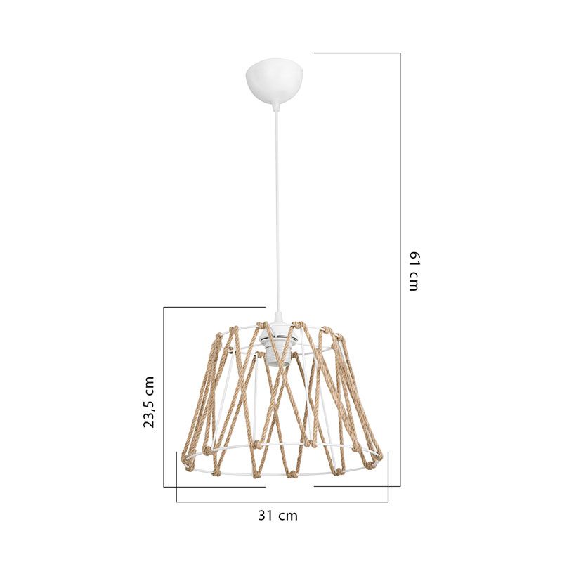 Σώμα φωτιστικού από μέταλλο μεγάλης αντοχής στη φθορά και στο χρόνο. Το καπέλο φέρει περιμετρικά διακοσμητικό σκοινί ειδικά κατασκευασμένο για φωτιστικά αντοχής.