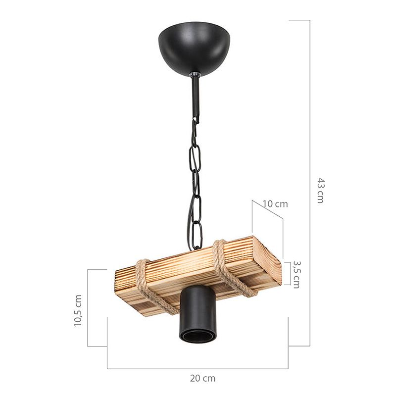 Φωτιστικό οροφής PWL-1027 pakoworld Ε27 φυσικό-μαύρο 20x10x43εκ