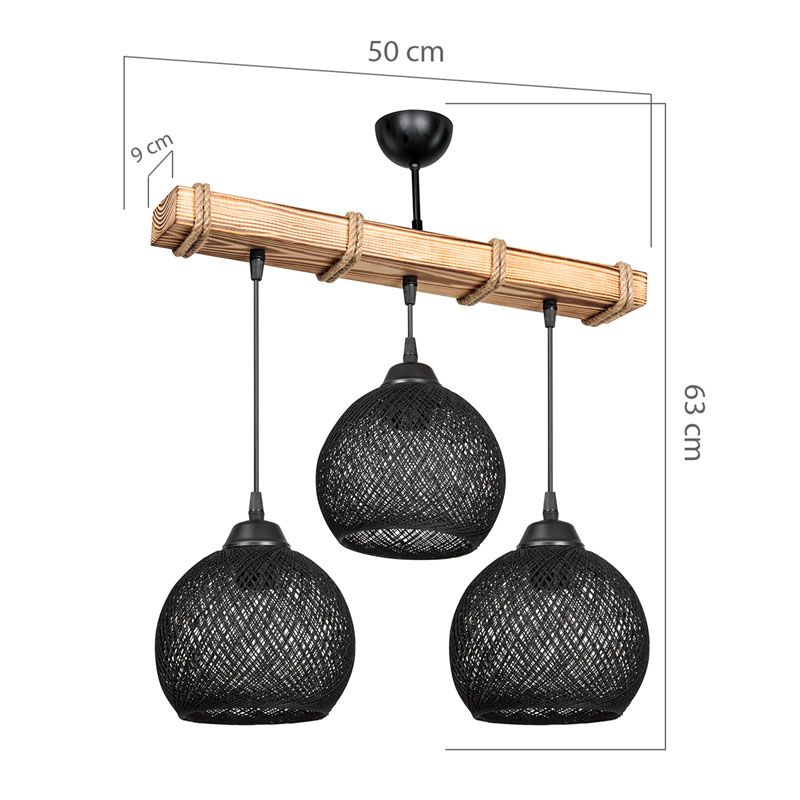 Φωτιστικό οροφής τρίφωτο Fiona pakoworld Ε27 μαύρο-φυσικό 50x20x63εκ